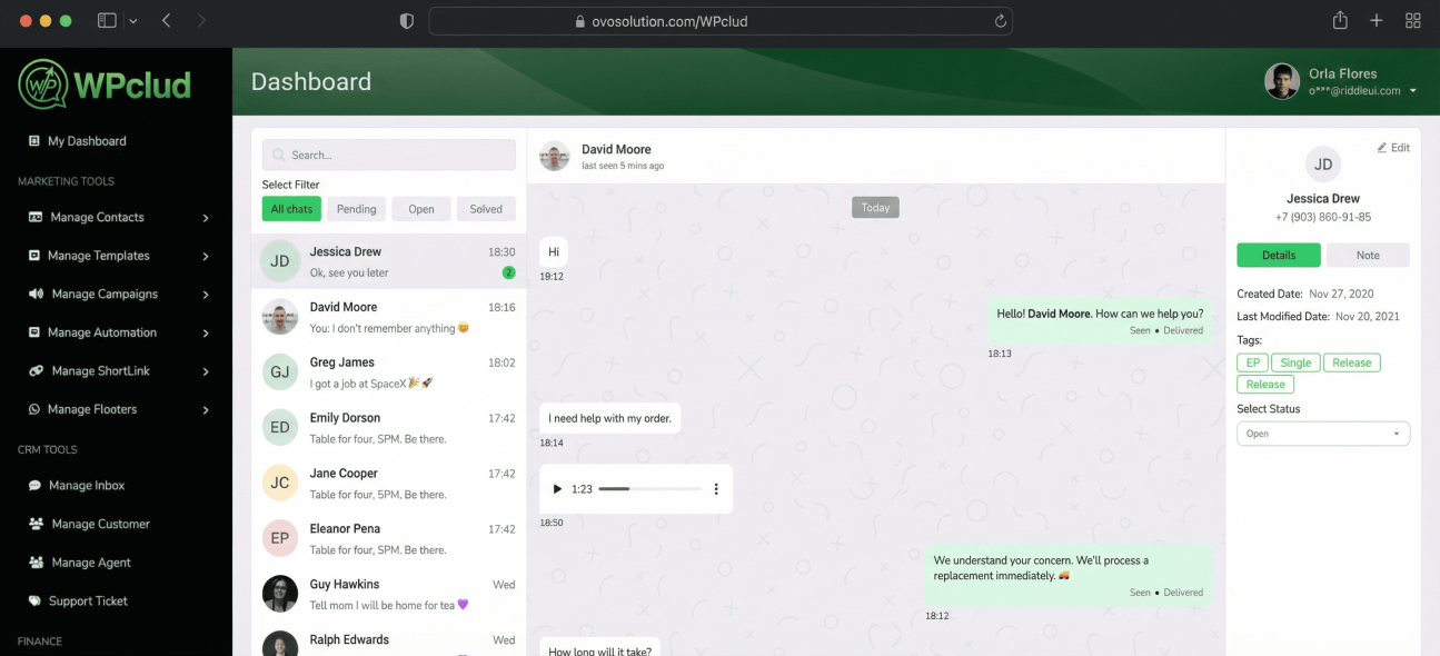 OvoWpp offers WhatsApp CRM tools, message automation, contact segmentation, multi-agent inbox, campaign analytics, and lead tracking.
